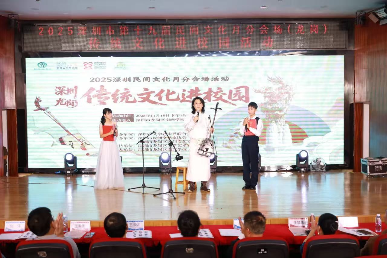 让学生们动手做、开口唱、亲身演。11月18日在龙岗区南湾学校举办的“深圳(龙岗)传统文化进校园”活动呈现系列多元生动的民间文艺表演,川剧的变脸神韵、马头琴的草原长调、古埙的幽远回响、民歌的鲜活腔韵带领学子们沉浸式感受跨越地域与历史的非遗音乐之美,大家还可亲身体验扎染、戏曲等非遗,从“旁观者”到“体验者”乃至“传承者”,在心中播下传统艺术传承的种子。