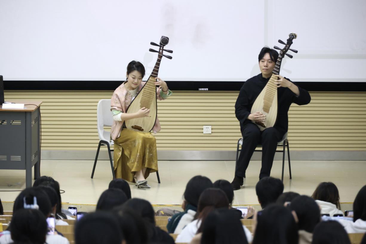一弦一世界。11月27日,琵琶演奏家、“文华奖”获得者、深圳琵琶学会理事杨莹莹携《琵琶经纬——千年弦语中的东方叙事》走进深圳职业技术大学,用精湛的技艺和深厚的文化底蕴为学子们解读琵琶艺术的奥秘,领悟每一曲弦语诉说的历史沧桑与厚重,蕴藏的艺术绚烂与辉煌,彰显的民族精神与风骨。讲座不仅是对琵琶艺术的深度解读,更是对东方文化的精彩演绎,让同学们与顶尖艺术家面对面交流。