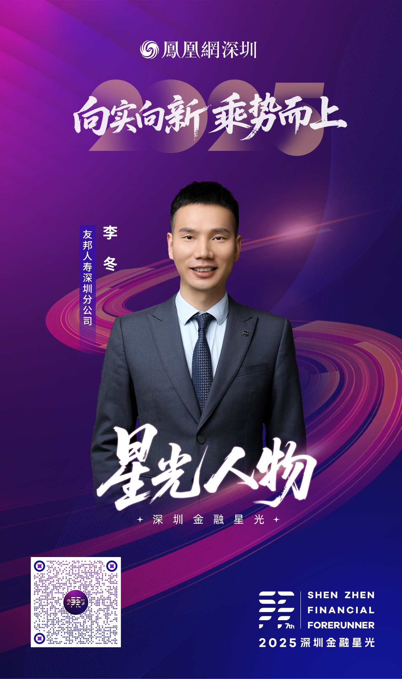 近日,由凤凰网深圳发起,携手深圳市银行业保险业共同打造的第七届“2025深圳金融星光”活动正式拉开帷幕。友邦人寿深圳分公司保险营销员李冬,凭借其长期践行服务初心、恪守行业责任的突出表现,荣获“2025金融星光人物”称号。