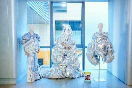 新锐设计师将科技元素与创新工艺融入设计。马皖豫《逆转未来》以无重力环境为灵感,用不规则剪裁凸显未来感;赵芝锐《后人类时代》探索“赛博格”身体观,结合解构主义与机能元素,配色前卫契合主题;齐永恒《第N次穿梭》基于AI科技灵感,以模块化设计与鲜明色彩对比彰显未来理念。可持续时尚成为亮点,祁晗《circle of Comfort》采用模块化可拆卸设计,实现16余种穿法,适配多场景需求;郭怡蕊《Creative Boundary》以环保面料拼接、反光条等元素,融合科技感与可持续理念,打破性别界限。