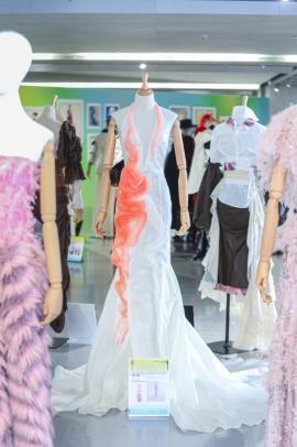 部分作品聚焦自然意象与人文关怀。李薇《兰叶拂风》捕捉兰叶灵动姿态,以“动中见静,柔中带骨”为核心理念,堪称动态水墨画;郭武《落叶归根》以植物拓染工艺呈现自然光影,回应人与自然和谐理念;李潇鹏、卞泽天合作的《大漠孤烟直》融合沙漠色调与敦煌历史,传递悠远情怀。人文关怀层面,刘越《矫之》系列将脊柱不适的生理感受转化为设计语言;翟艺滢《女性的纹路》把妊娠纹等孕育痕迹抽象为设计元素,展现母性之美;梁程远《一千千克美好》以成长历程为灵感,引发精神共鸣。