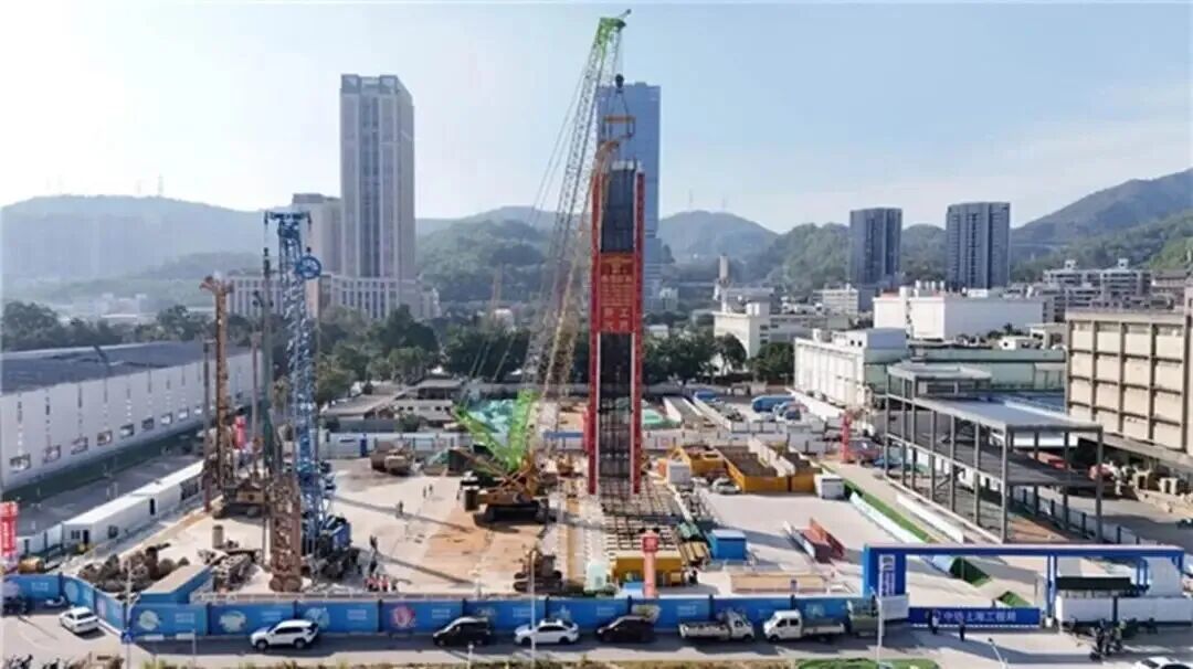 从高处俯瞰,罗湖北站站城一体化及上盖物业开发建设工程如同一条缎带,其东西跨度700余米、南北宽仅68米的狭长区域中,还穿插有多条城市主次干道。