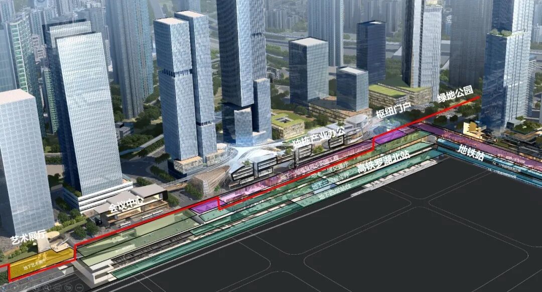 罗湖北站相比传统的开发设计,更加强调对新的生产、生活方式的适配性。可以预见的是,通过地下枢纽与地上开发一体化结建方式,该项目将更好地实现与产业发展、招商引资的深度协同,以复合化功能成为清水河数字新城的产业服务纽带,助力构建站城一体与可持续发展的生态圈。