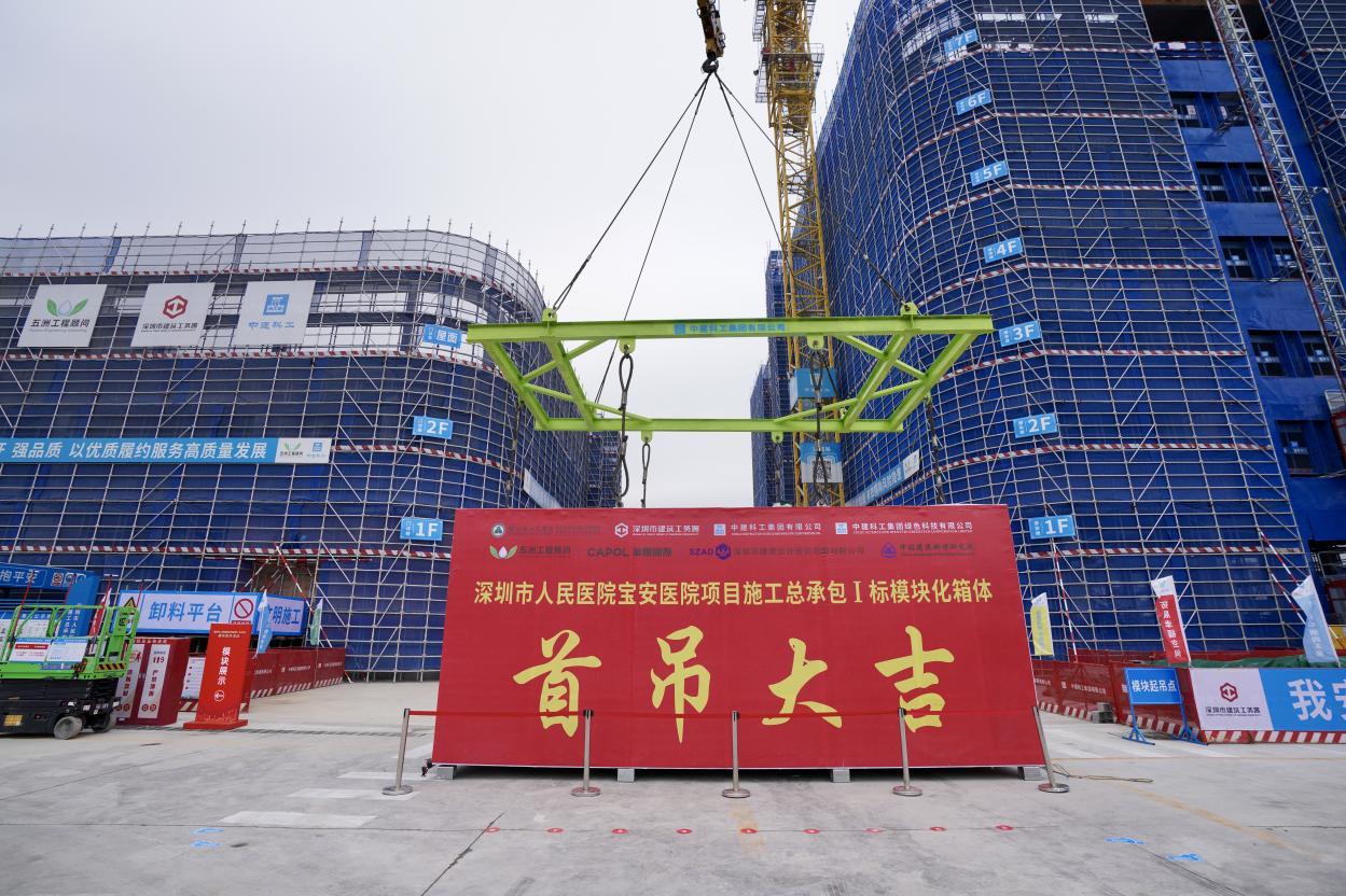 12月26日,深圳市人民医院宝安医院感染楼首个嵌入式模块已顺利完成吊装及平移就位,标志着工程进入全面快速建造阶段。