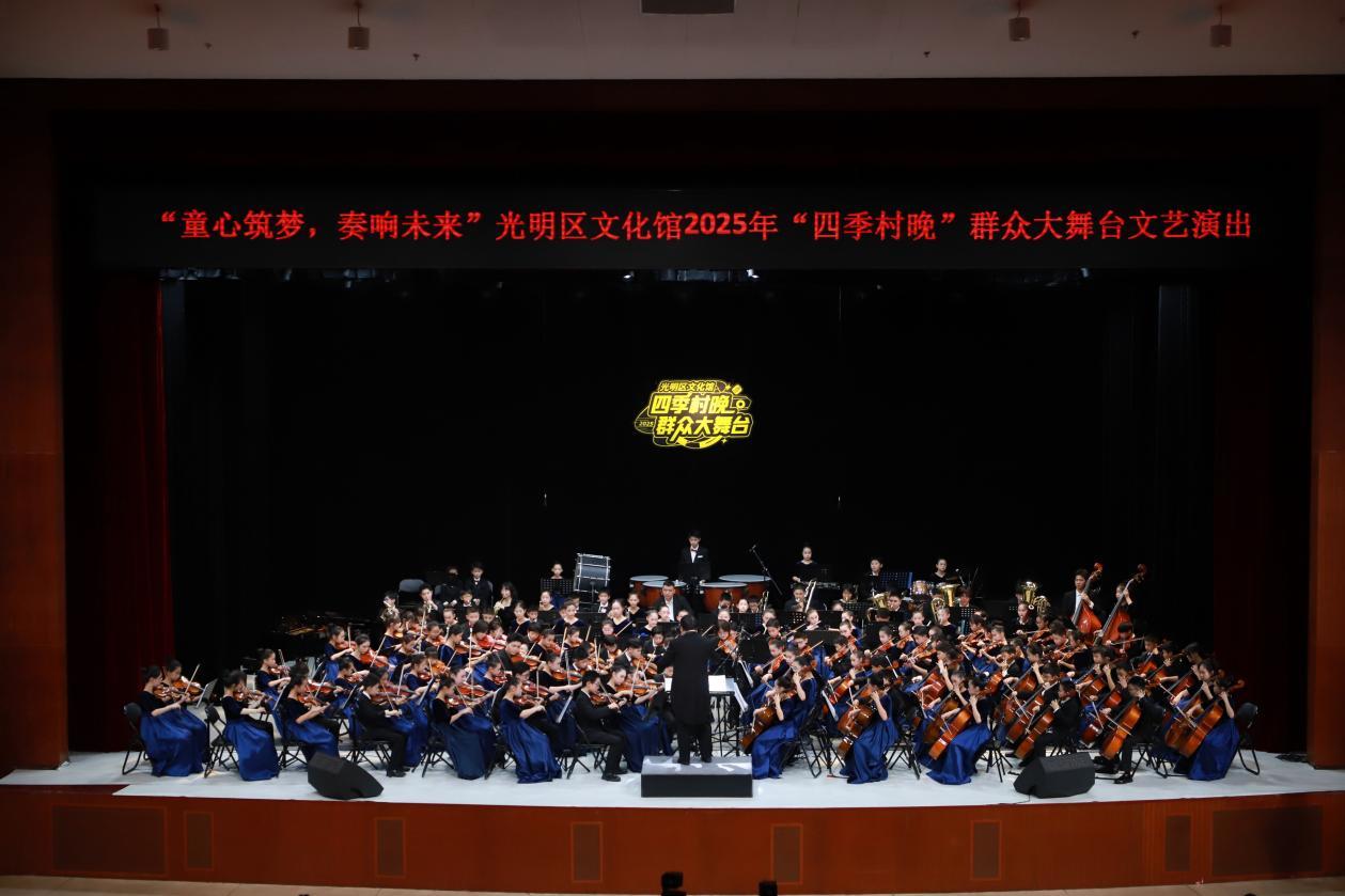 2025年12月28日晚,光明区文化馆剧场内乐声激昂、掌声如潮,2025年度“四季村晚”群众大舞台收官演出——“童心筑梦 奏响未来”交响音乐会在此华彩上演。