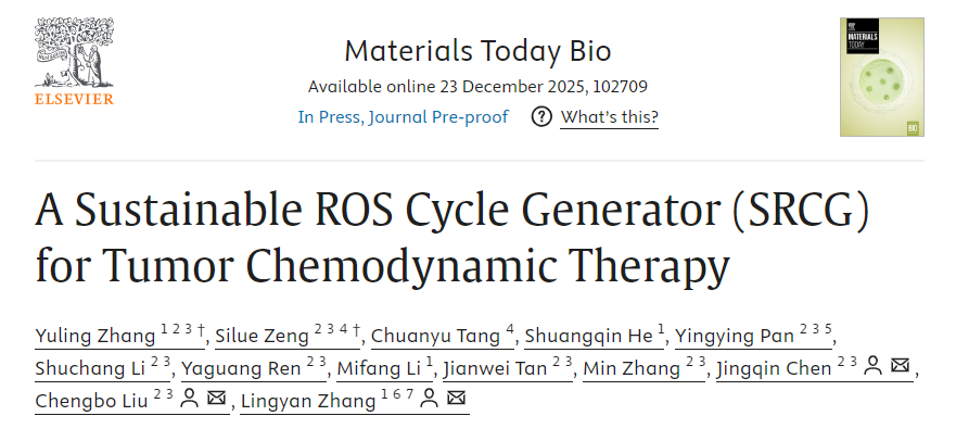Yuling Zhang, Silue Zeng, et al. “A Sustainable ROS Cycle Generator (SRCG) for Tumor Chemodynamic Therapy.” Materials Today Bio (2025). https://doi.org/10.1016/j.mtbio.2025.102709