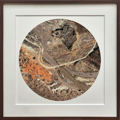 初见新疆大峡谷的那一刻,被其壮阔辽远的色彩深深震撼,也由此萌生了以粤绣(珠绣)这一传统工艺去重释自然之景的念头。