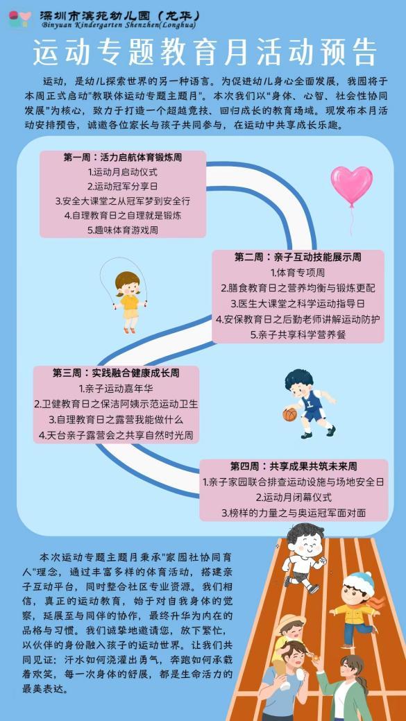 随着闭幕式的圆满结束,为期一个月的运动专题教育月画上了句号,但这更意味着一个崇尚运动、健康生活的新起点。深圳市滨苑幼儿园(龙华)通过本次运动月,成功构建了家园社协同育人的有效模式,为破解学前教育资源与路径难题提供了可操作、可推广的实践样本。