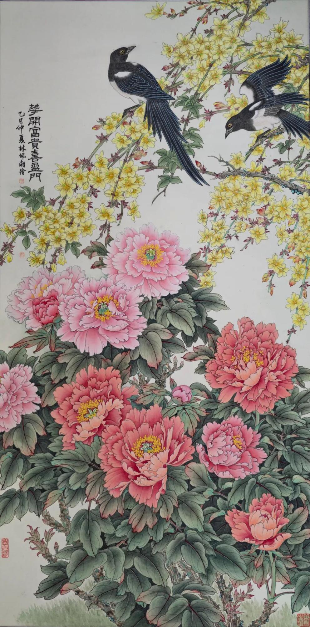 2024年中国没骨花鸟画作品“花开盛世太平年"获得广东省第十七届美术书法摄影作品联展国画类铜奖。
