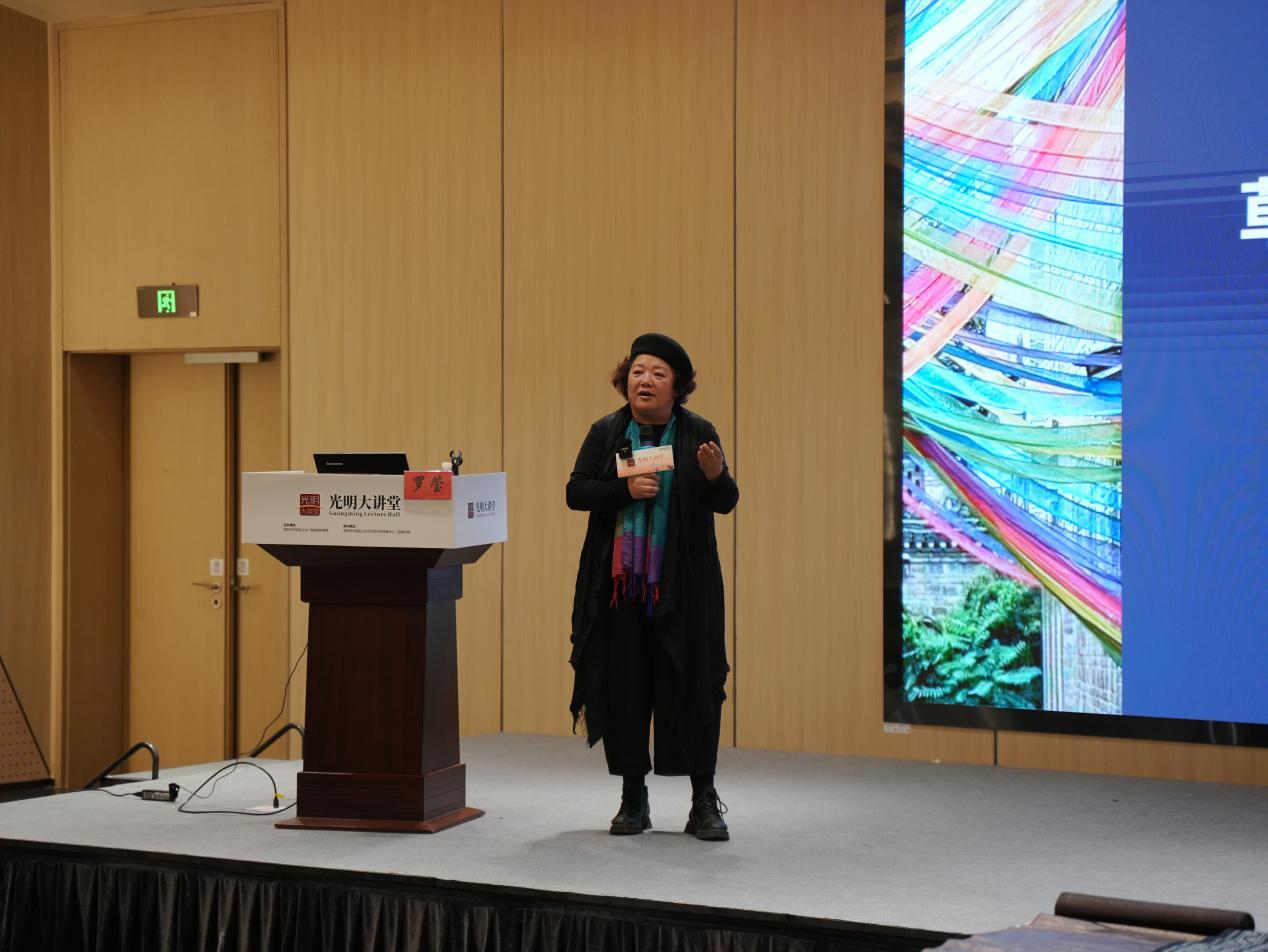 1月11日,2026年“光明大讲堂”首场讲座在光明区图书馆总馆一楼报告厅举行。活动邀请深圳技术大学创意设计学院教授罗莹,以《草木染华章:解码中国传统服饰的色彩密码》为题,引领听众跨越千年时光,探寻藏在传统服饰里的色彩密码。