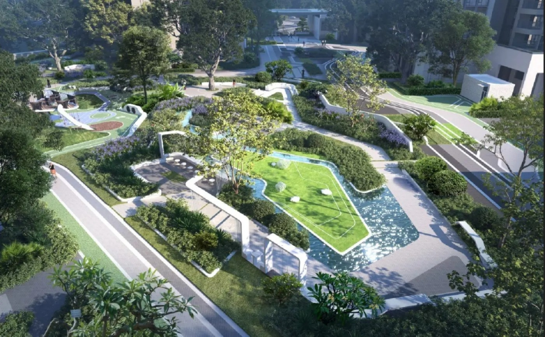 在高度原子化的城市社会关系中,拾悦城楠园试图通过物理空间设计催化新型社群联结。围合式布局与人车分流体系创造出安全的步行尺度社区,儿童游乐区与环形慢跑道形成全龄活动场域。超30%的绿化率不仅体现在植被覆盖率,更表现为多层次立体景观——底层灌木、中层花乔与顶层乔木构成生态滤网,有效调节微气候。