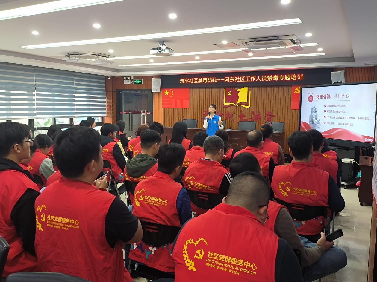 近日,西乡街道平安法治办联合河东社区党群服务中心,以党建为引领,组织全体社区工作人员开展禁毒专题培训。培训紧扣基层禁毒“新形势、新焦点、新作为”核心,聚焦提升工作人员新型毒品识别、政策解读及重点渠道防控能力,为构建党建引领下的社区禁毒共治体系筑牢基础。