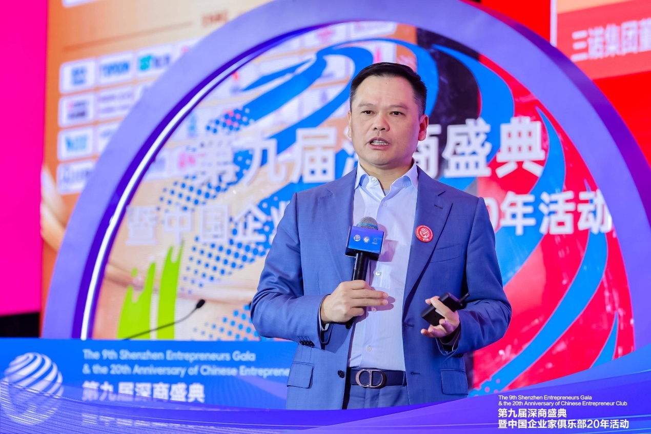 三诺集团董事长刘志雄以“AI赋能产业互联网”为核心,分享了高端制造生态构建的创新实践。他提出,AI已从消费端工具进化为产业端核心生产力,正在推动制造业从标准化走向个性化、从工业化迈向智能化、从中心化迈向场景化,实现从“功能替代”到“系统重构”的深刻变革。