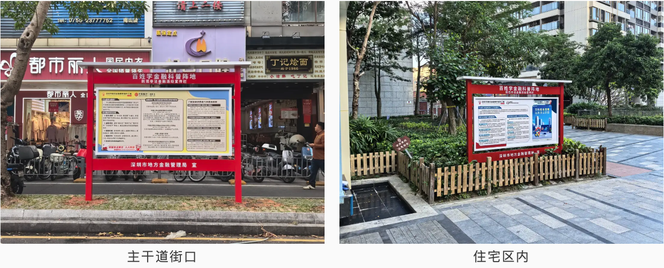 在全市11个区建设维护了194个“百姓学金融”科普阵地,覆盖公园、广场、街道行政服务大厅、社区党群服务中心、小区、商圈、写字楼、城中村、学校、工业园区、高铁站、公交地铁站点、主干道路边、停车场、美食街等地,通过安装宣传栏、宣传展架、投放金融科普资料等方式,设置防范非法集资宣传示范点,重点普及金融通识、防范金融风险知识等内容,打造深圳市金融社会民生工程的新亮点。