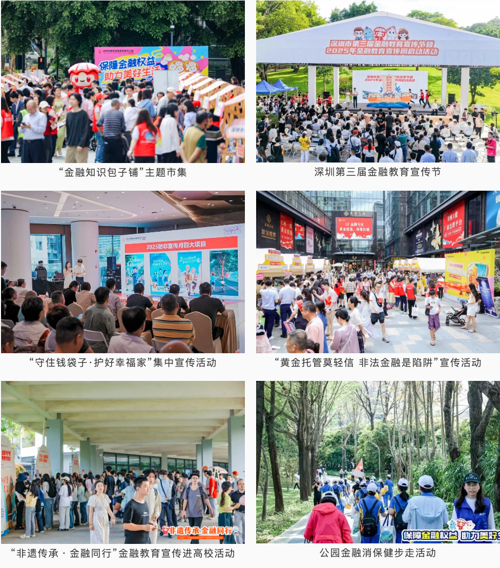 工程办公室全年持续开展“贴近实际、贴近生活、贴近群众”的常态化金融教育宣传活动,宣传内容融知识性、趣味性、传播性为一体,精准匹配不同群体需求;宣传场景实现消费场景全覆盖,走进深圳十一区,累计深入超10个校园、10个城中村、20余个商圈、80多个街道社区,并覆盖多个企业、公园、口岸、社区党群服务中心、志愿者U站、金融驿站及网点营业部等;宣传聚焦重点人群,精准覆盖青少年、大学生、老年人、新市民、街道基层工作者、商户、游客、外籍来华人士等;宣传形式全面开花,全年共组织各类活动近200场,形成“月月有活动、场场有亮点”的宣传格局,确保效果深入人心。