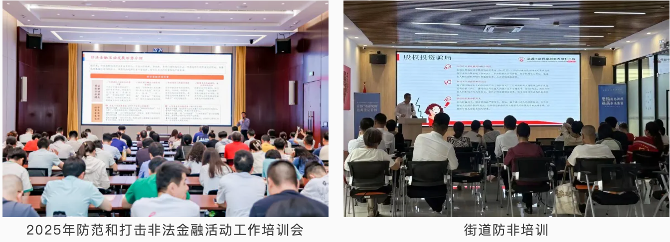 工程办公室联合福田区、南山区、龙岗区、坪山区组织专家讲师开展超15场防非打非专项培训并开设线上视频分会场,超2000名学员参加,帮助基层工作者掌握识别、发现和举报非法集资线索方法,企业核查要点等内容;开展“我是基层防非宣传员”项目,通过广泛动员,组建11支街道防非志愿队伍,近2000名基层防非宣传志愿者深入街道社区、家庭、商圈、公园等场景,以“点对点”宣传模式开展防非知识普及,切实发挥风险警示“前哨站”与知识传导“扬声器”作用。