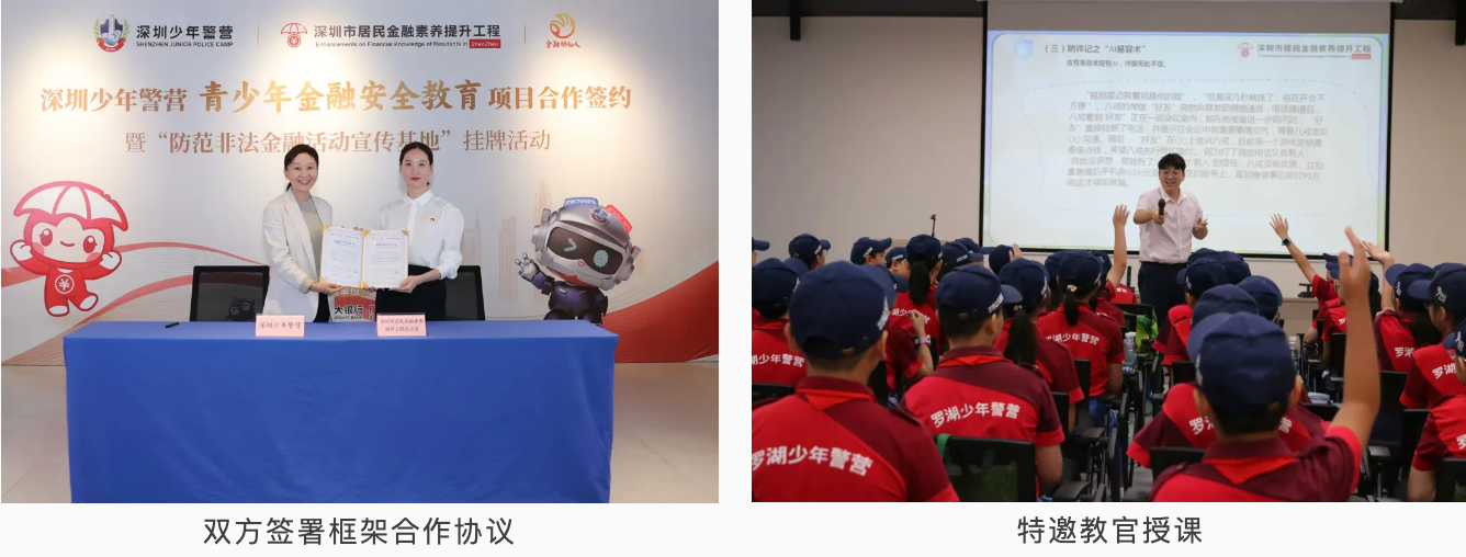 工程办公室与深圳少年警营进行框架合作签署,共同推出“青少年金融安全教育”系列活动,通过组建金融专家教官团队、开发系列课程、共建防非宣传基地等,系统性地提升青少年金融风险防范意识和能力,构建“警营+金融”协同联动的青少年金融安全宣传体系,共同推动青少年金融安全教育常态化、体系化发展。项目于2025年9月启动,累计培养超100名金融教官及少警志愿者,活动宣传覆盖超2000名少警队员。