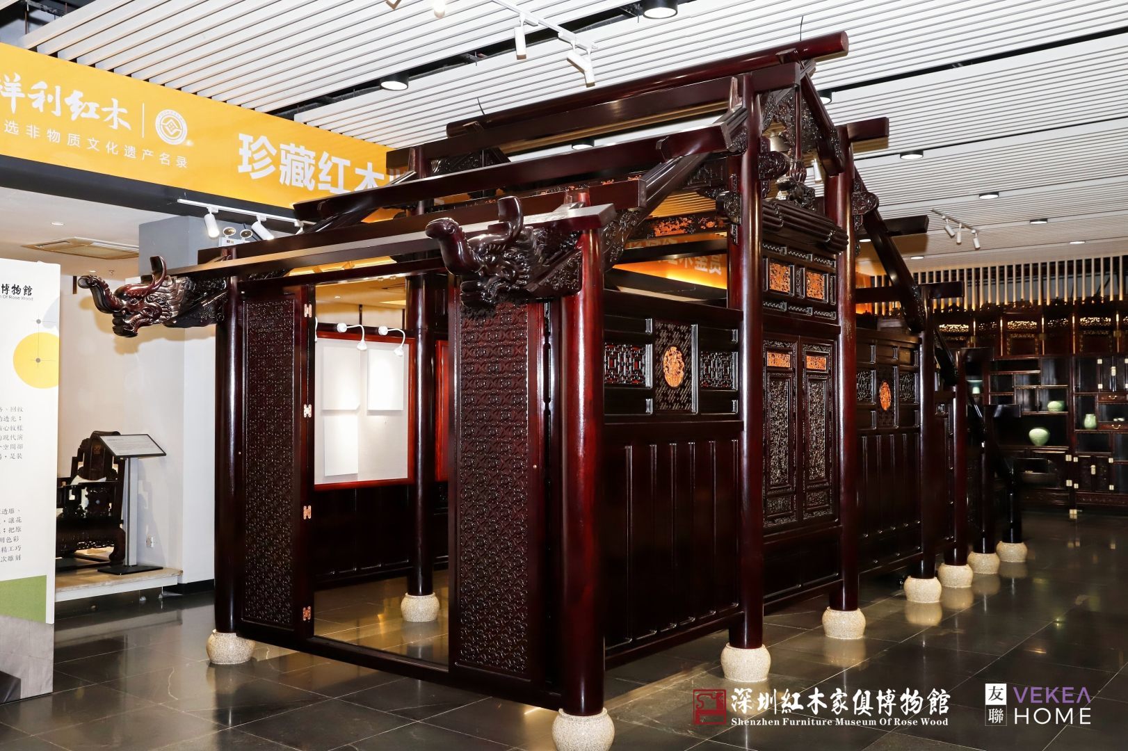 元月迎新,文化焕彩。1月17日至18日,为期两天的“全案筑家·方寸皆景——红木与空间的设计美学对话”主题活动在深圳红木家具博物馆举行。活动现场不仅设置工艺展示区与木屋工坊,让观众近距离感受红木制作的精湛技艺,还围绕“全案筑家”理念,通过空间效果图展示、实际交付案例分享、设计师现场对接等环节,系统呈现红木家具在当代家居设计中的全案应用。