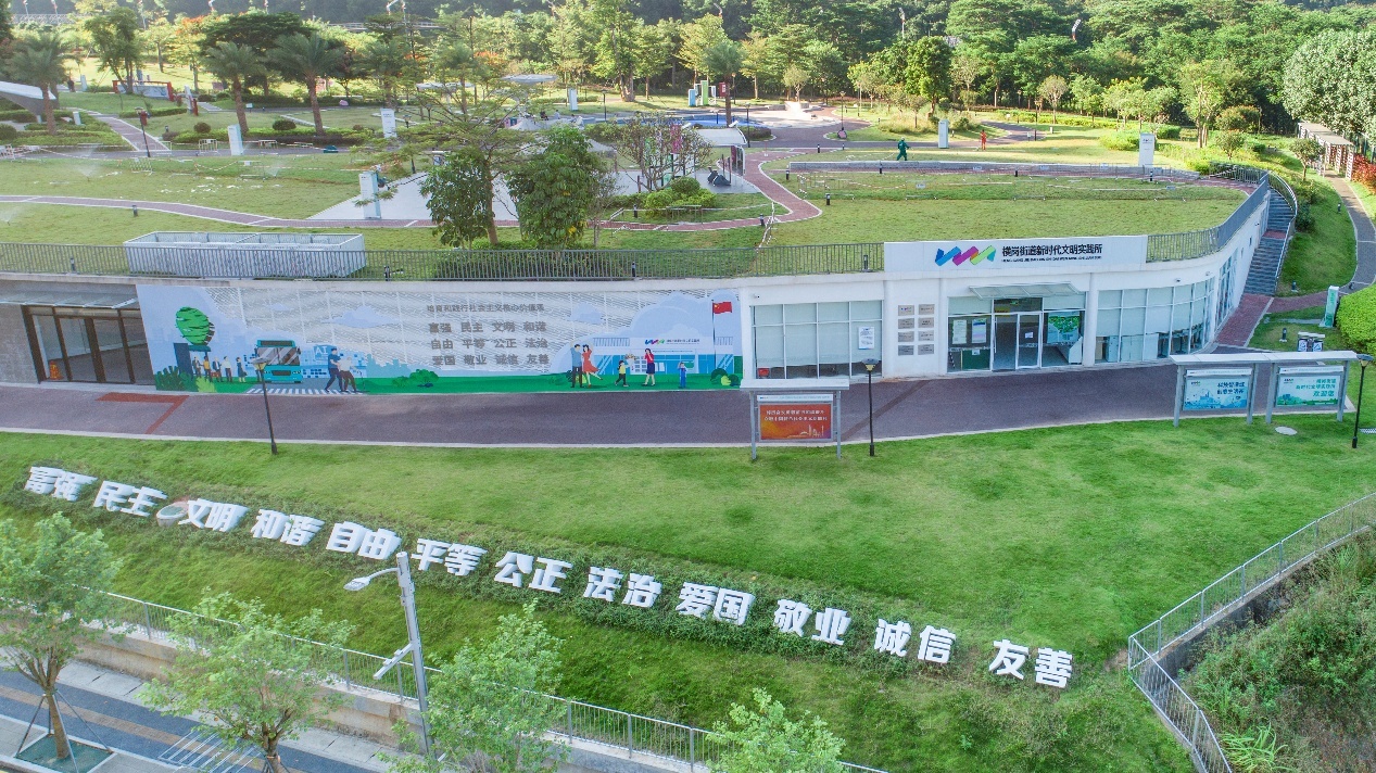 想让文明服务“零距离”?横岗玩起了“矩阵游戏”!一个与社区公园深度拥抱、面积近3万㎡的街道级实践所,成为居民“家门口”的文明客厅;9个社区实践站升级为多功能“百宝箱”;N个特色点散落在公园、基地,法律咨询可能在绿道上,安全教育能“穿越”进AR里。这里,文明阵地“活”了起来,用融合打破了空间的边界。