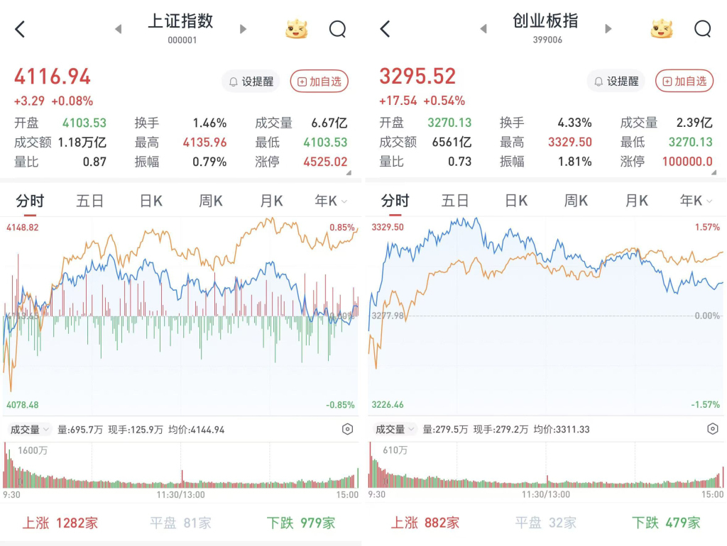 至收盘,上证综指涨0.08%,报4116.94点;科创50指数涨3.53%,报1535.39点;深证成指涨0.7%,报14255.13点;创业板指涨0.54%,报3295.52点。