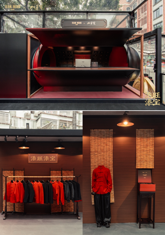 快闪现场同步呈现多款 TEAM WANG design × 加多宝联名服装单品,涵盖新中式唐装、卫衣等设计,