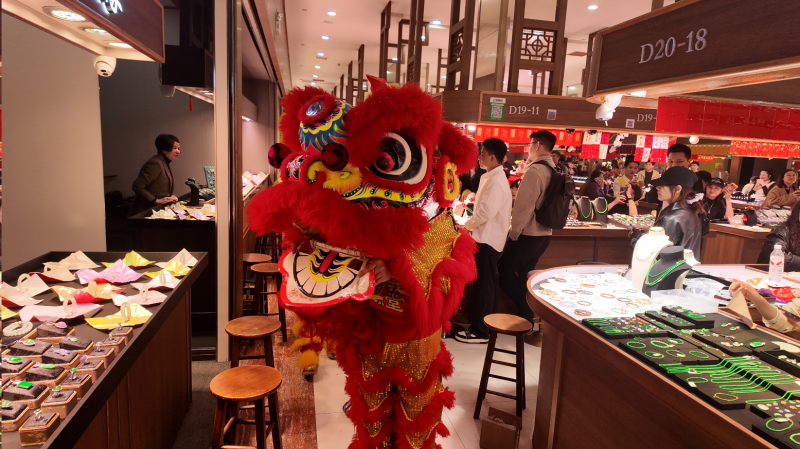 平洲玉器街(产业地标):醒狮作为“产业祝福官”,为源头匠人商户拜年,致敬匠心根基。