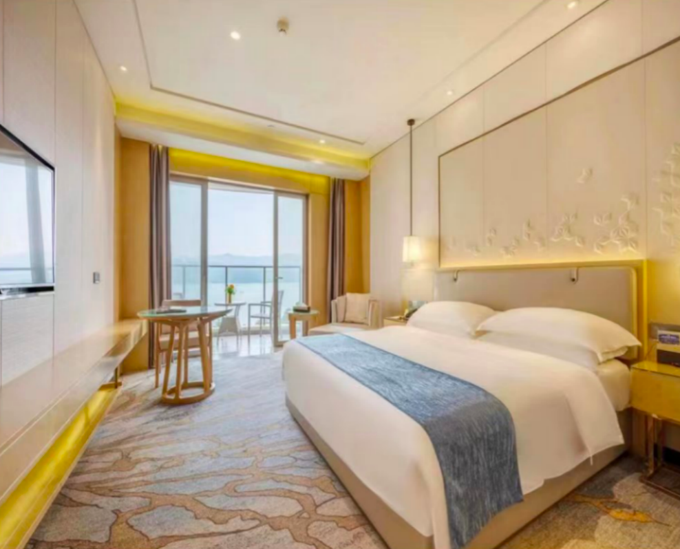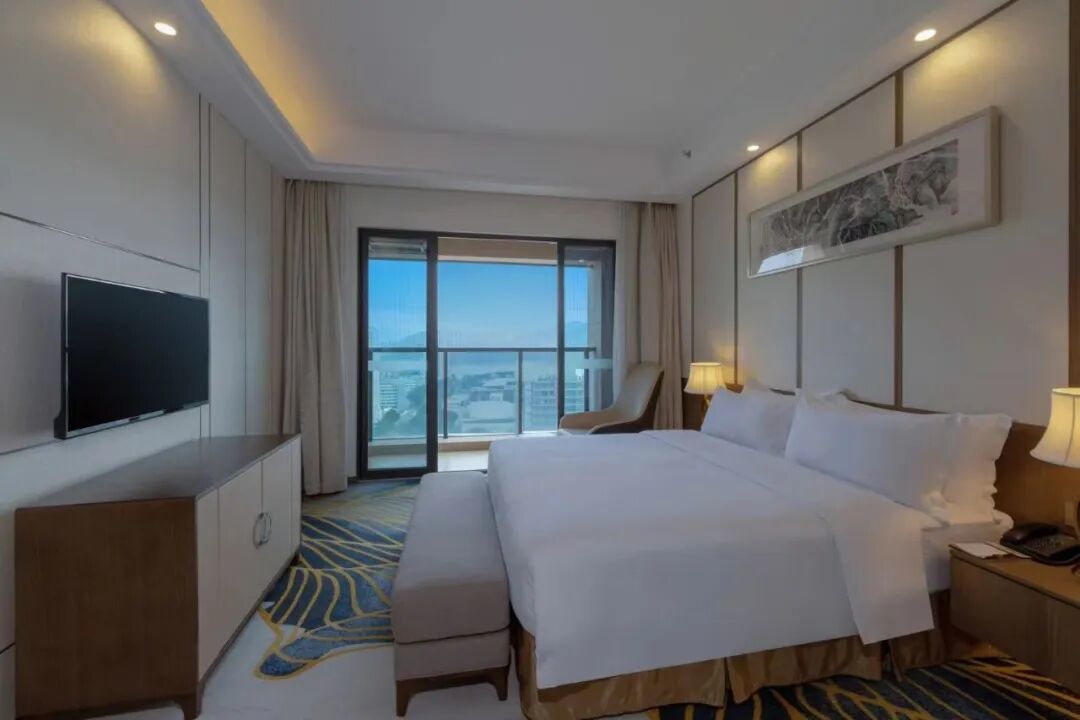 酒店宽敞,阳台可以饱览氤氲山海,简约轻奢的现代风情配套设施为宾客提供绝佳入住体验。