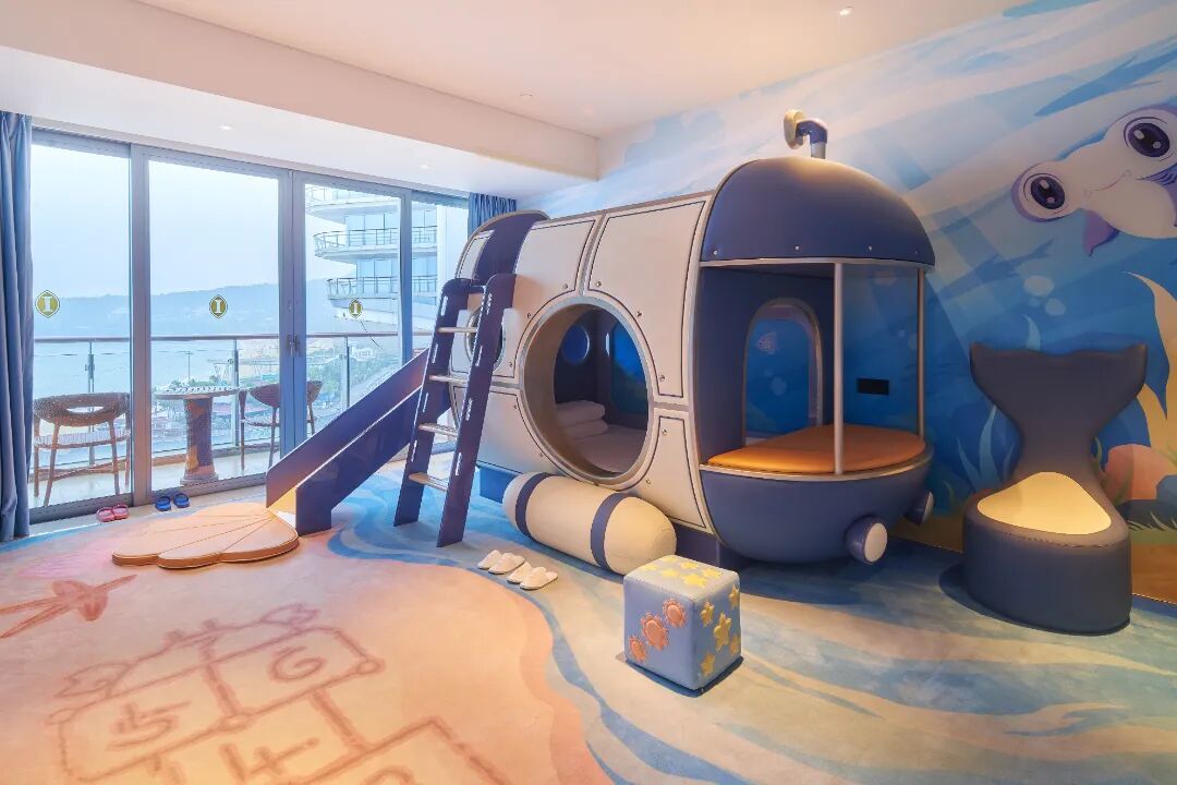 豪华海景房、行政海景套房、总统套房……283间客房各有千秋,内设各具情调的中西日三个餐厅、大型国际会议中心、康体中心、室内恒温游泳池、室外园景游泳池、湾湾儿童书吧、趣湾儿童乐园等,远离城市的喧嚣,于一处静谧,享一份安然。