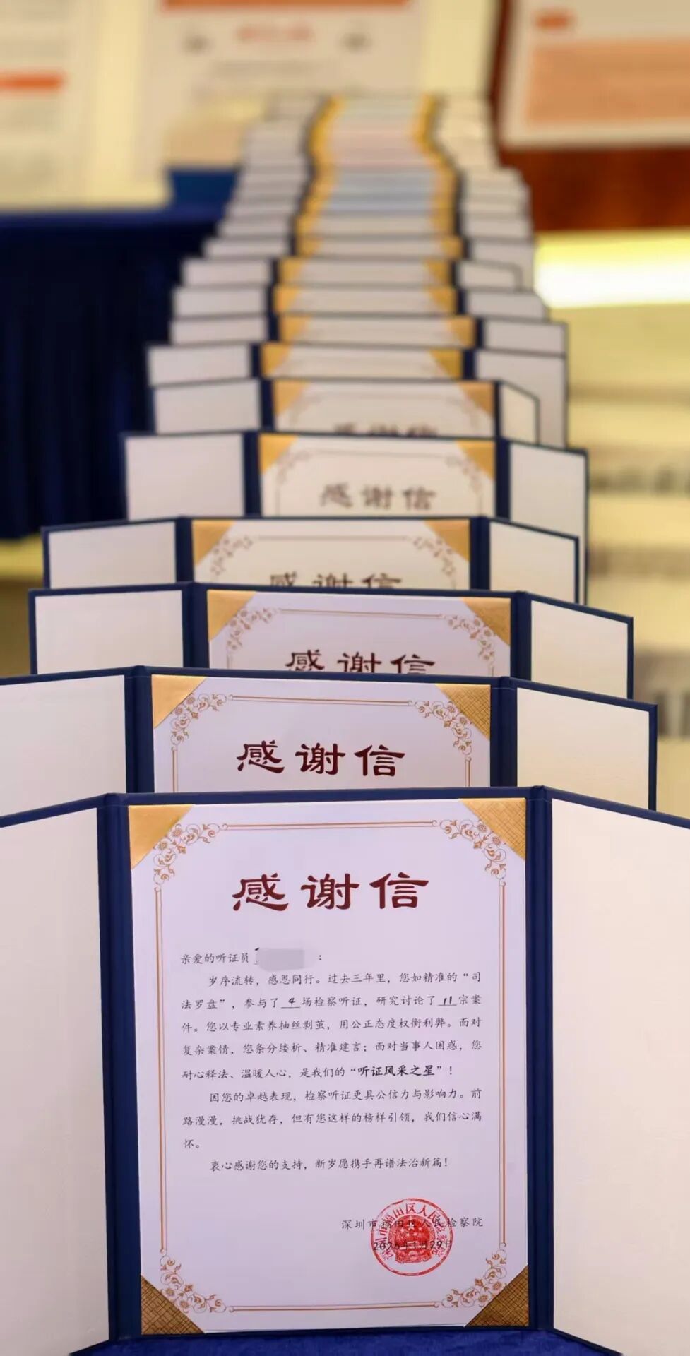 为向各位听证员的辛勤付出致以诚挚谢意,王向阳检察长为到场的每位听证员都送上一份专属感谢信,传递检察敬意与充分肯定。