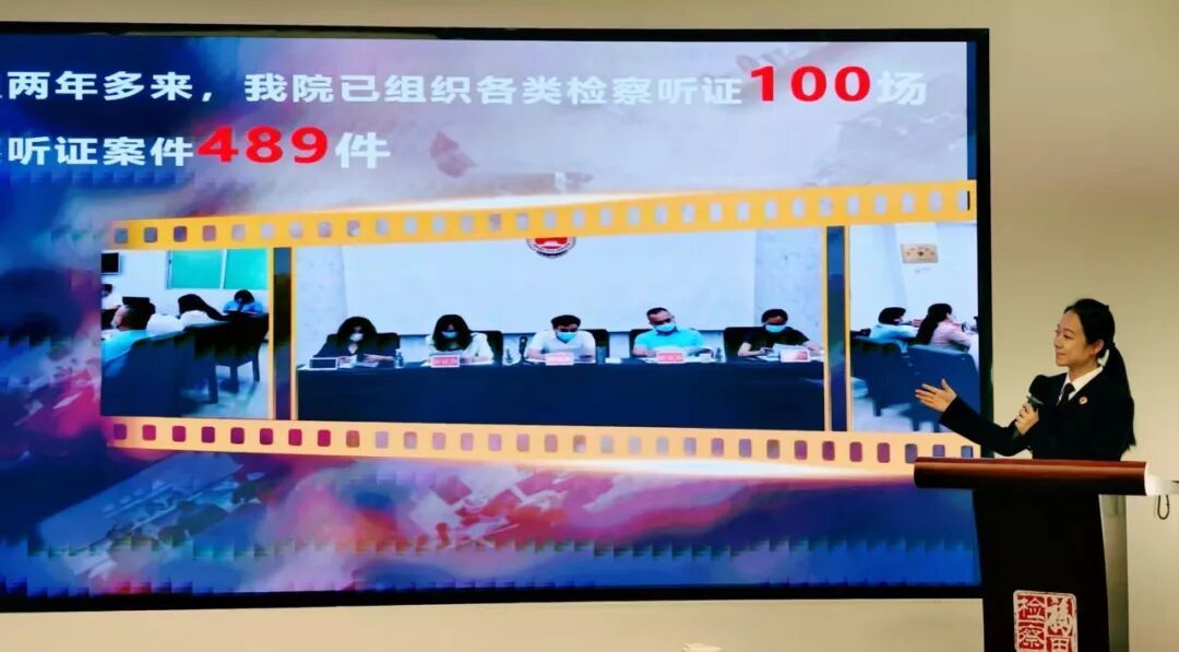 2023年11月,我院面向社会各界选聘了首届45名听证员,成立了听证员库。截至2025年底,本届听证员共参与各类检察听证案件489件次。在PPT中,我院还将每位听证员的履职数据及参与案件性质进行了清单式分类统计展示,一组组履职数据不仅是每位听证员的履职成效,更凝结着听证员的付出与智慧。