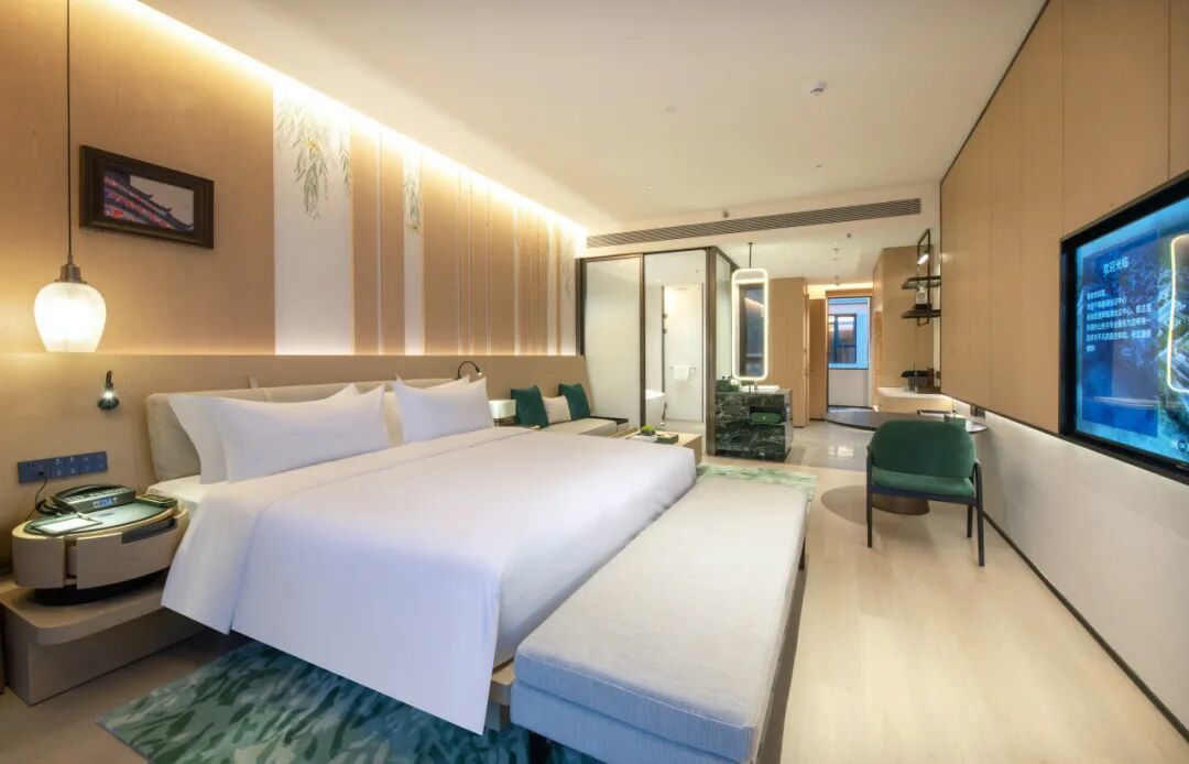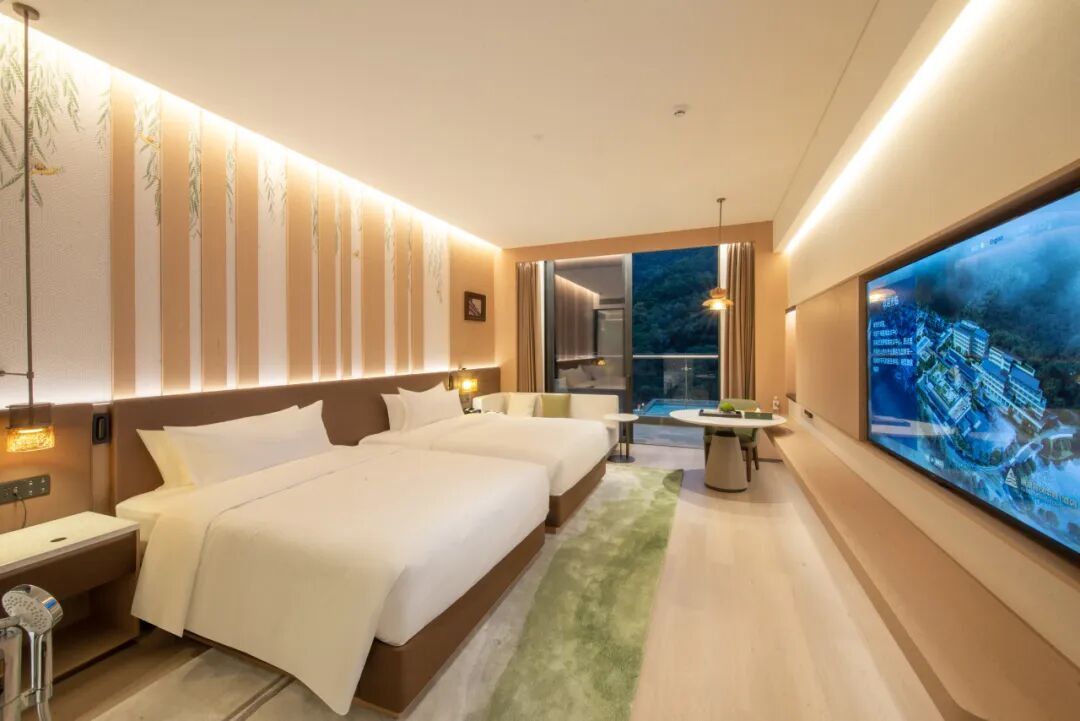此外,韶华楼进一步完善“会议+住宿+休闲”一体化的服务场景,配备室内恒温泳池、健身房、特色SPA及酒吧,致力于为宾客提供更加舒适与完整的居停体验。