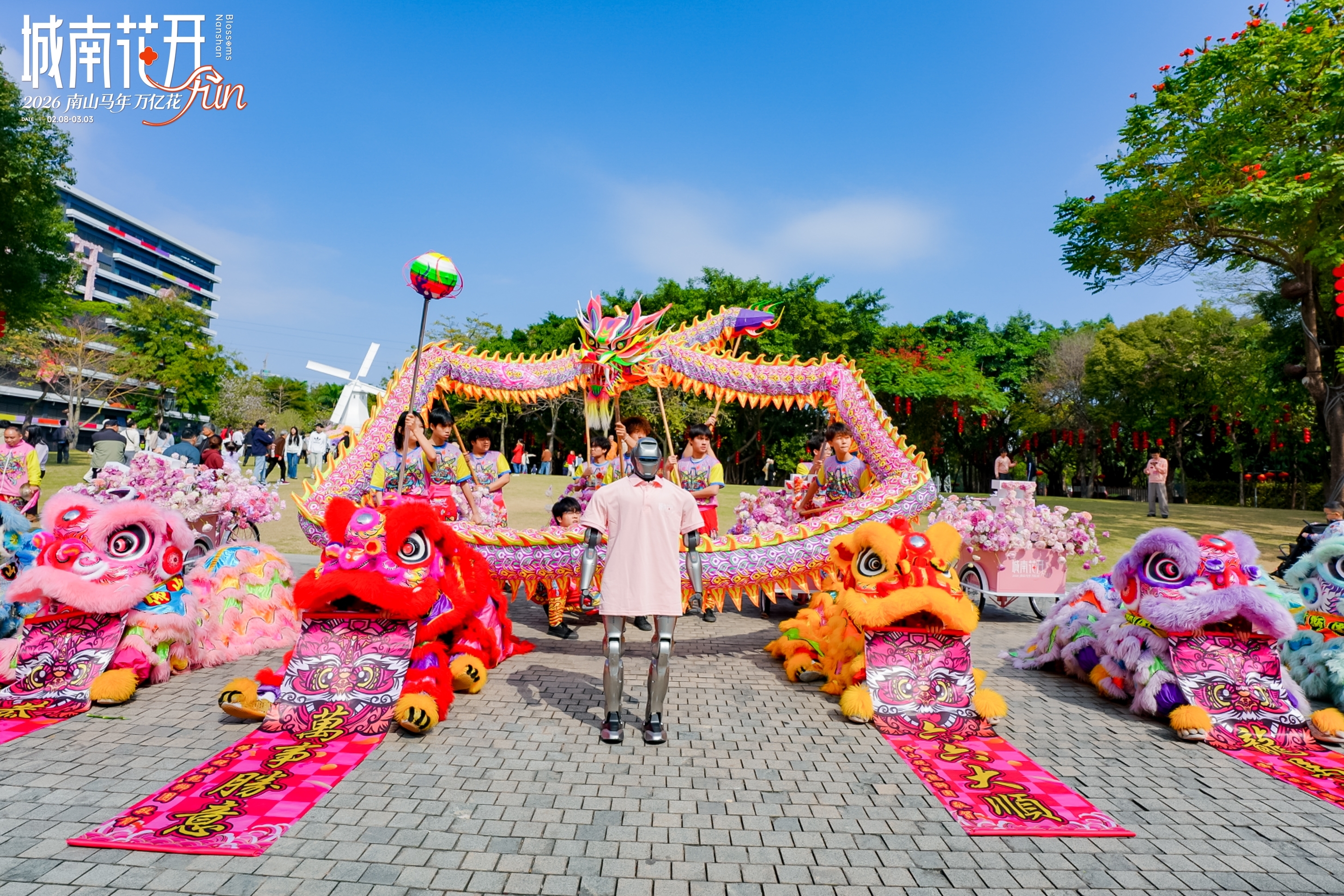 本次花事活动延续“城南花开”品牌,创新采用“3+1+N”联动模式,布局荷兰花卉小镇、中山公园、南头古城3个主会场,深圳湾大街-深圳湾文化广场1个分会场,同时串联各街道购花点与重点商圈,实现南山全域花事场景联动。启幕现场热闹非凡,舞龙迎春、花仙子送花、非遗簪花互动等传统民俗轮番登场,英歌舞、机器人与银发合唱团的跨界演出让人耳目一新,隆重的插花启幕仪式,正式拉开这场新春花事的帷幕。