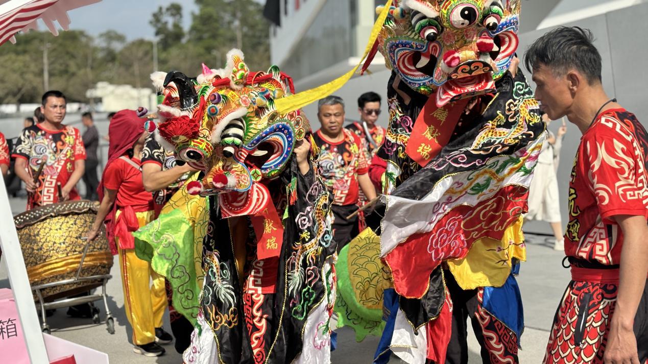 活动在激昂的锣鼓声中拉开序幕。象征吉祥如意的舞麒麟率先登场,随后,市集在热烈的气氛中正式启动。两只麒麟穿梭于各摊位之间,与居民亲切互动,引来阵阵欢笑,为市集增添了浓厚的传统民俗色彩与灵动活力。