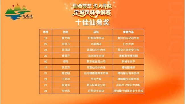 参赛选手们各展匠心、各显神通,或坚守传统技法还原食材本味,或大胆创新融合烹饪理念,打造出一道道风味各异、创意十足的特色菜品。经专业评委团细致品鉴、打分,以及大众评委团现场投票,赛事最终评选出“十佳仙肴”奖10名,“优胜奖”20名,“最佳人气奖”1名。