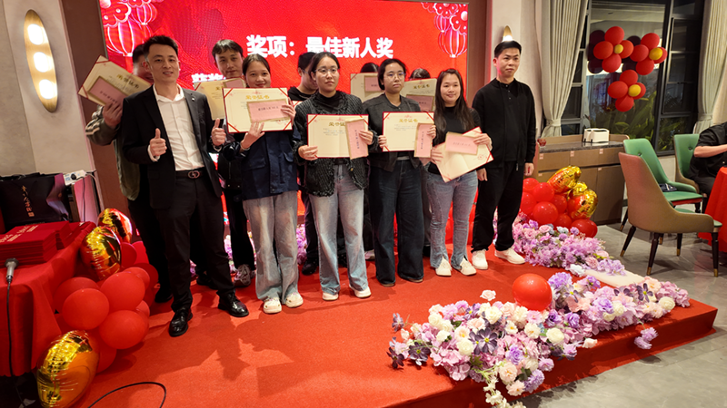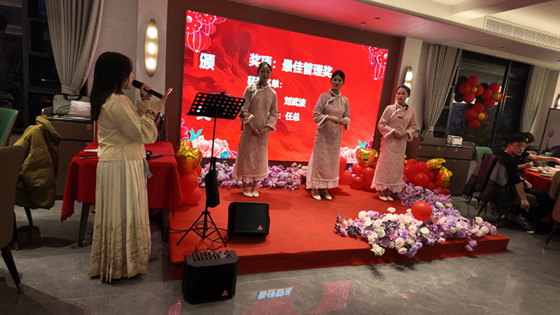 将晚会推向首个高潮。公司对2025年度表现卓越的员工及团队进行了隆重表彰,依次颁发了"最佳新人奖"、"突出奉献奖"、"优秀个人奖"、"优秀管理奖"及"最佳管理奖"。获奖者们踏着荣耀的掌声登上领奖台,他们的辛勤付出与卓越成绩,成为了全体同仁学习的榜样。