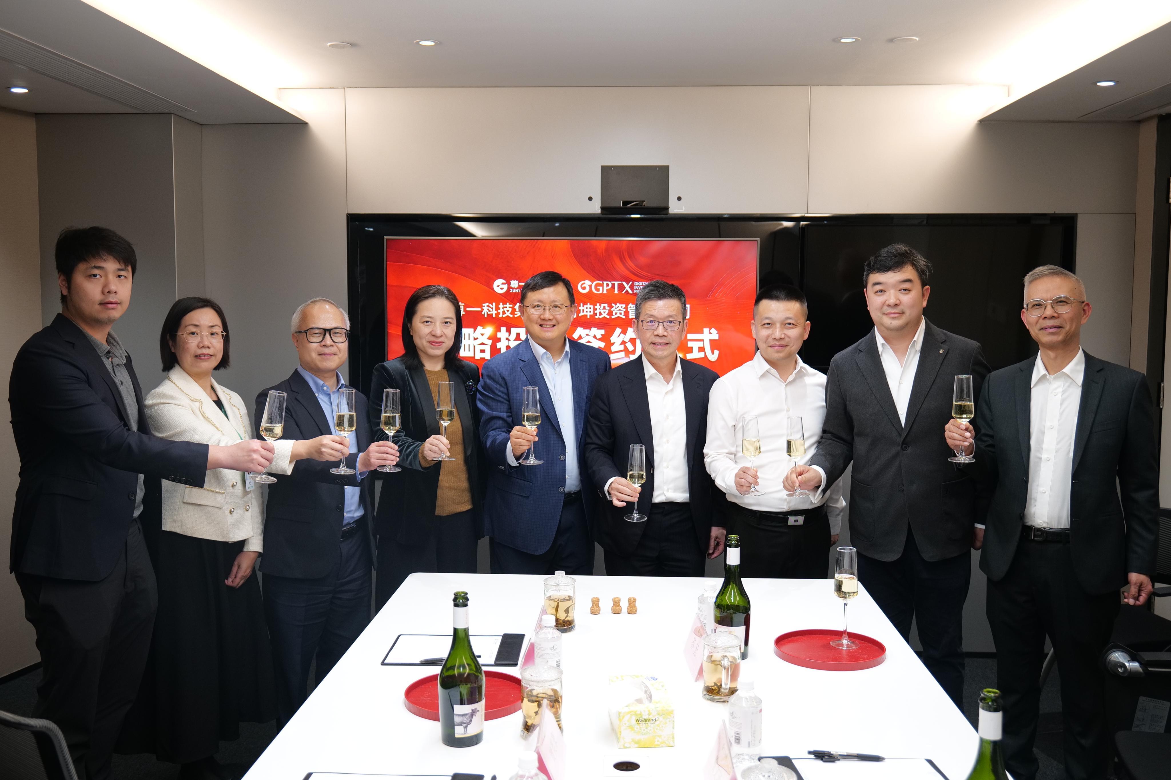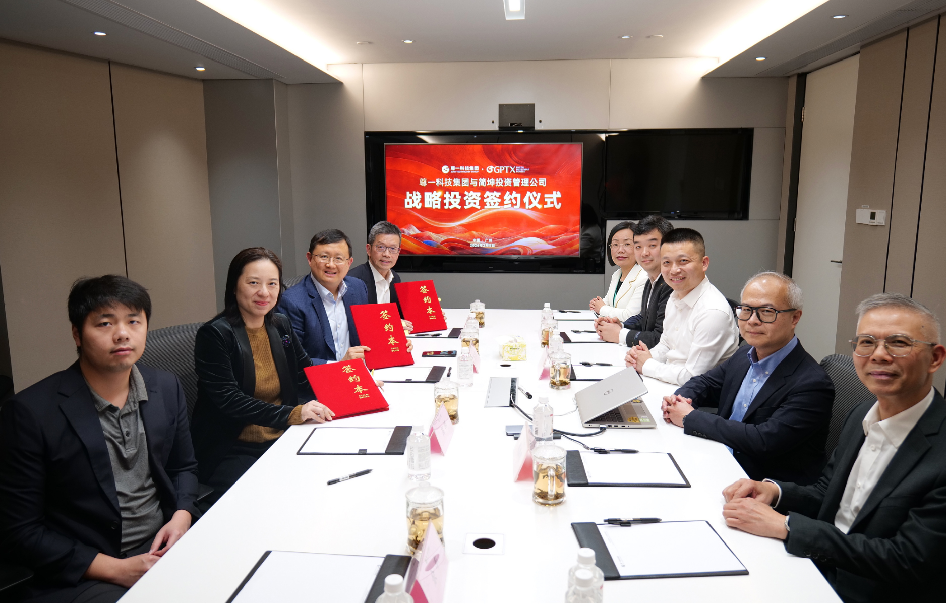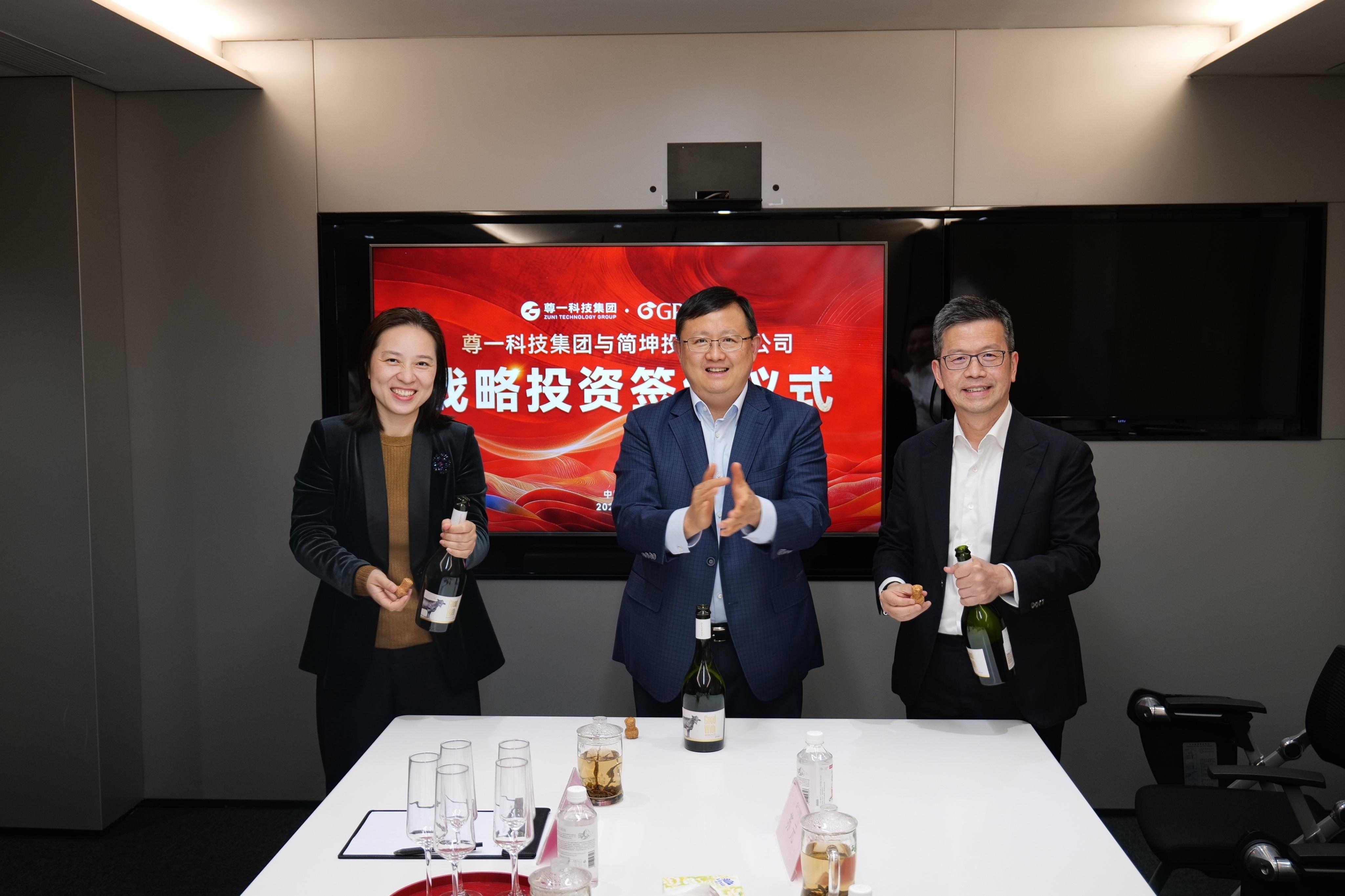 签约仪式现场,尊一科技集团董事长黄英豪与简坤投资创始人、CEO高婷共同签署协议。尊一科技集团联席董事长谢立斌、集团董事总裁喻文涌、集团董事兼财务总监傅溢鸣、小翅科技董事陈素仪及简坤投资代表等共同出席见证。