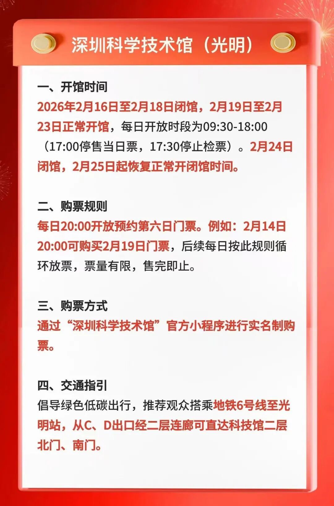 深圳科学技术馆除夕至年初二闭馆