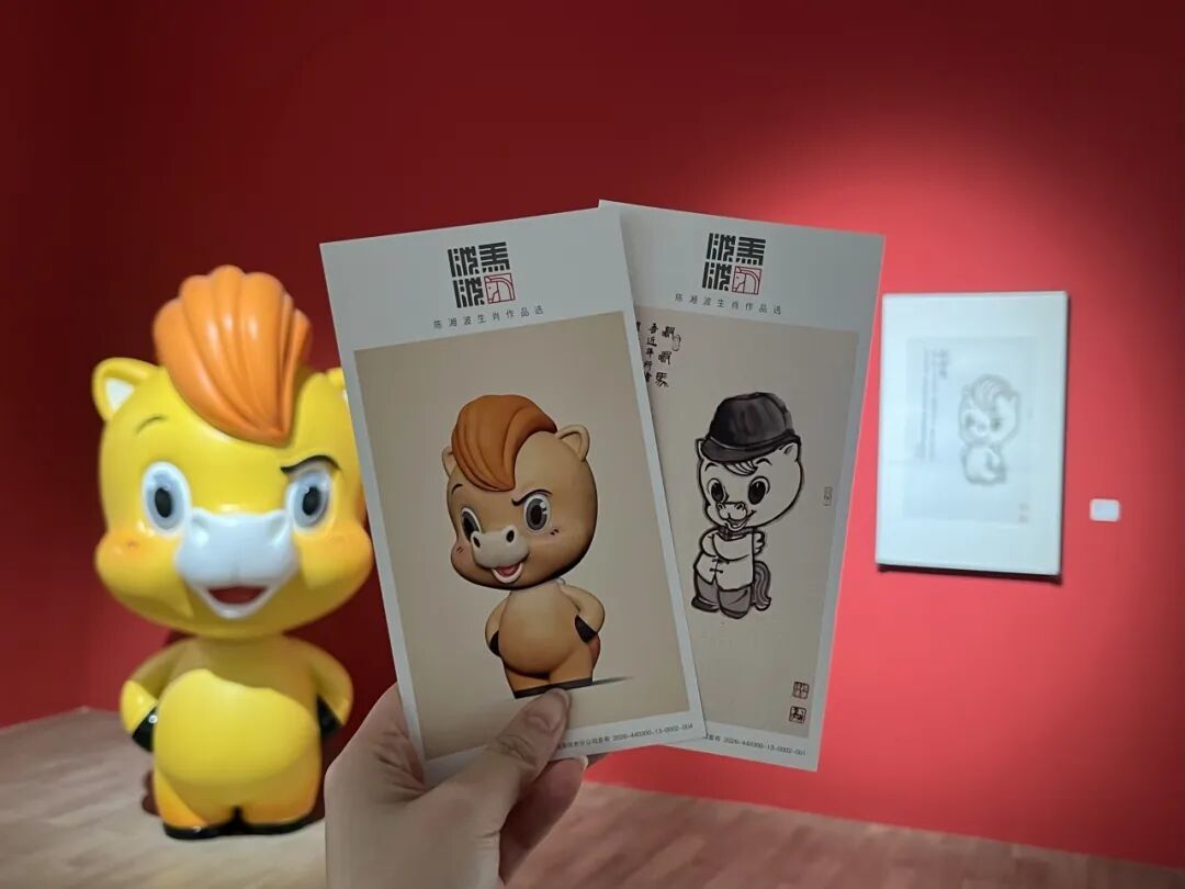 观展还能领福利?观众按照要求发布笔记,就有可能获得陈湘波×中国邮政联名马年纪念明信片和限量版“啵啵马”软萌摆件盲盒,把马年好运带回家~