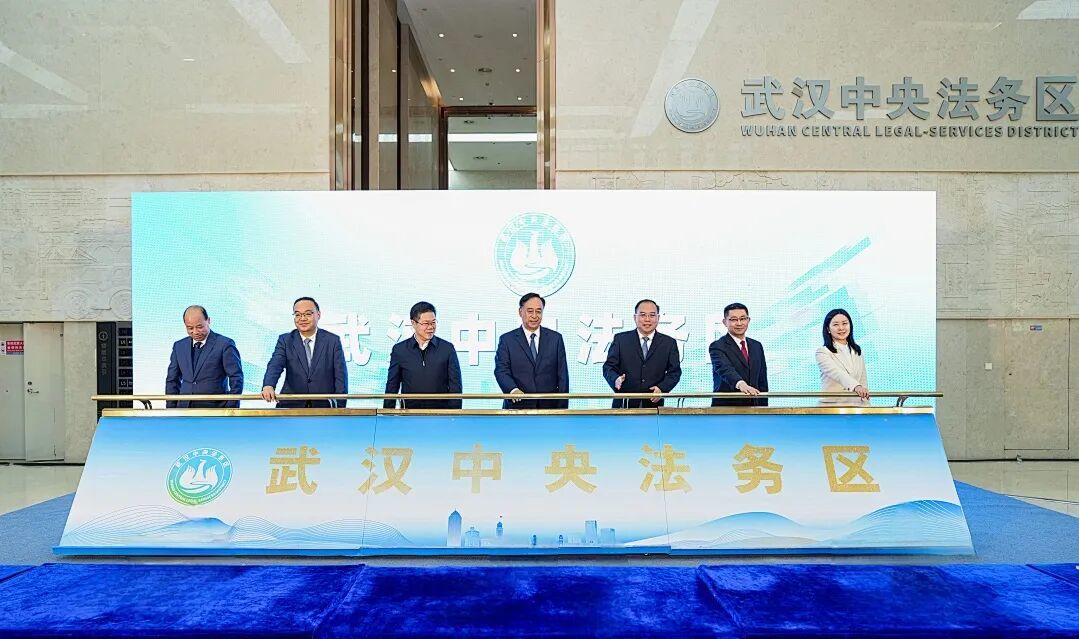 活动现场,省司法厅党委书记、厅长杨军,市委常委、市委政法委书记张忠军,武汉海事法院院长李群星,市中级人民法院院长刘太平,市人民检察院检察长彭胜坤,江汉区委书记叶文静,市司法局党委书记彭国元共同为武汉中央法务区揭牌。武汉仲裁委办党组书记、主任李章波,委办党组成员、副主任苏勤,委办副主任李芊出席揭牌仪式。
