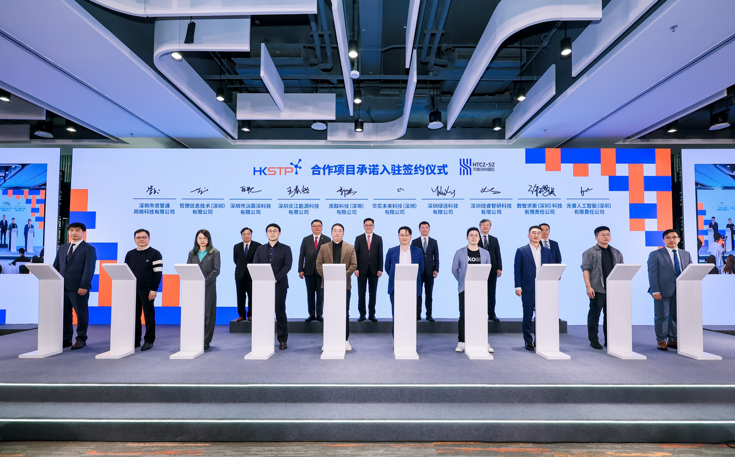 圖五﹕10家科技企業在一眾嘉賓見證下進行合作項目承諾入駐簽約儀式。