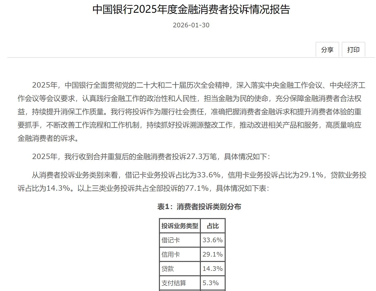 近期,包括中国银行、建设银行等在内的国有大行,以及众多地方农商行,陆续披露了2025年度金融消费者投诉情况报告。这些报告共同勾勒出一幅清晰的投诉“热力图”:借记卡、信用卡、个人贷款等基础核心业务,依然是消费者投诉最为集中的领域。与此同时,一个值得警惕的信号是,“债务催收”相关投诉在多家银行呈现显著上升态势,成为新的焦点。