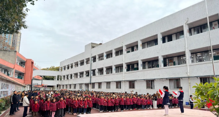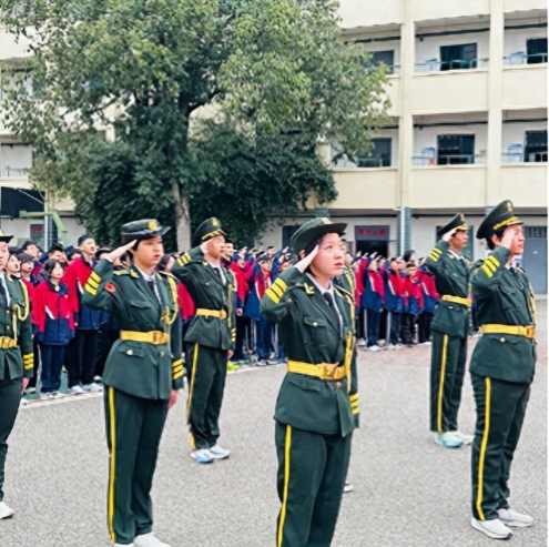伴随着庄严的国歌声,鲜艳的五星红旗冉冉升起。全体师生肃立行礼,稚嫩而坚定的声音唱响对祖国的热爱。这一刻,每一双专注的眼睛里,都倒映着那一抹最美的中国红。