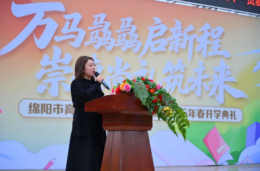 绵阳市第十五中学党支部书记、校长 杨城鑫登台致辞,他以“马”为喻,勉励全体师生:“要有龙马精神的朝气,更要有万马奔腾的拼劲!”言辞铿锵,掌声如雷,点燃全场奋进激情!