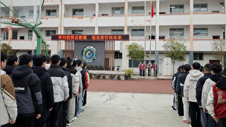 伴随着雄壮的《义勇军进行曲》,鲜艳的五星红旗冉冉升起。全体师生肃立注目,高唱国歌,以庄重的仪式感开启新学期的篇章,厚植爱国情怀,凝聚奋进力量。