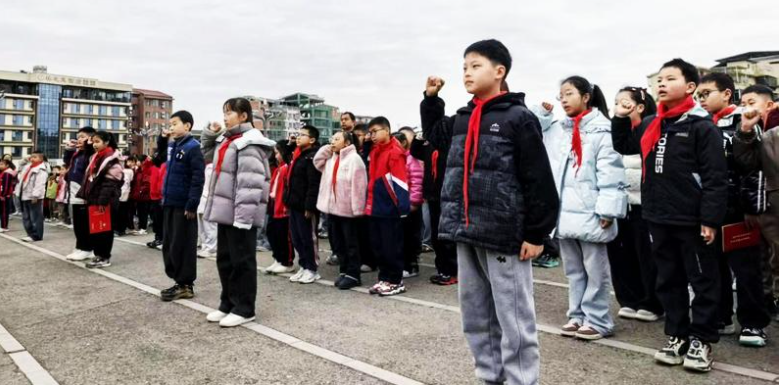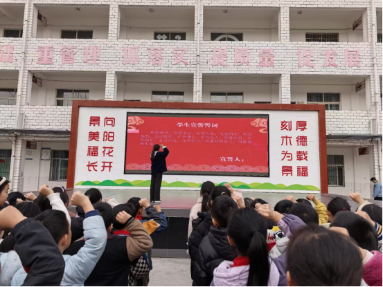 学生们在王语萱的领誓下高声宣誓,稚嫩而坚定的声音,彰显着少年学子不负时光、勇敢追梦的昂扬风貌。