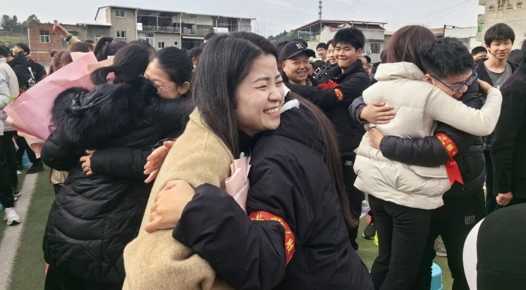 在温馨的互动环节中,家长们紧紧相拥,传递着温暖与力量。同学们用拥抱表达对父母的感恩,父母们用鼓励回应孩子的信任,现场洋溢着浓浓的情谊,也为紧张的备考氛围增添了一抹温情。