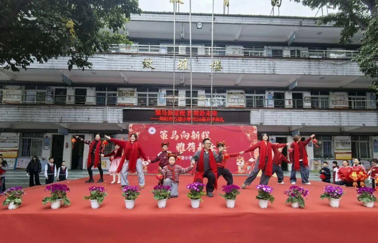 春启新程,策马扬鞭。3月5日,三台县景福镇小学全体师生齐聚操场,以“乘马年之风,赴飞驰之约”为主题举行2026年春季开学典礼,借马年奋进、拼搏的美好寓意,为新学期吹响奋斗号角,开启全新的成长征程。