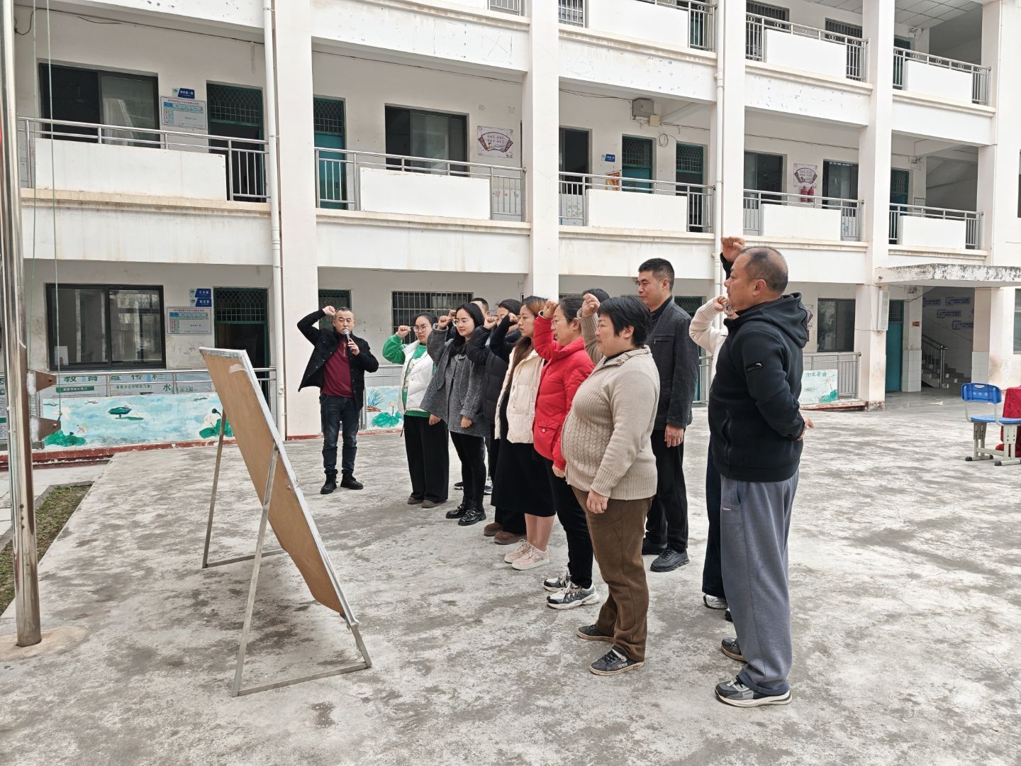 活动伊始,全体教师在领誓人的带领下,高举右拳庄严宣誓,铿锵有力的誓言回荡在校园上空,彰显了全体教师坚守教育初心、潜心立德树人的坚定决心。