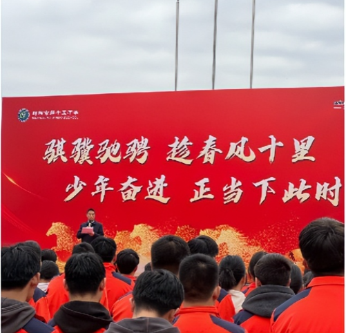 唐军校长的致辞,温暖而有力量,既饱含着对全体师生的殷切期望,又勾勒出学校发展的宏伟蓝图。他指出,时代呼唤工匠,技能铸就未来。2026年是充满活力的丙午马年,更是学校乘势而上、再创辉煌的一年。期望同学们立志当如千里马,行事需学老黄牛;老师们应善为伯乐,师生共进如群马奔腾,在技能的赛道上策马扬鞭,不负时代,不负韶华。