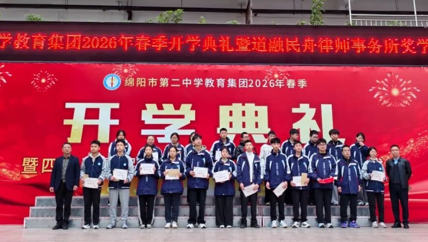 3月2日上午,绵阳市第二中学教育集团全体师生齐聚操场,隆重举行2026年春季开学典礼暨道融民舟律师事务所奖学金颁奖仪式。全体师生以昂扬之姿迎接新学期的到来,在春日的暖阳中许下逐梦的誓言,共同开启新学期的崭新篇章。